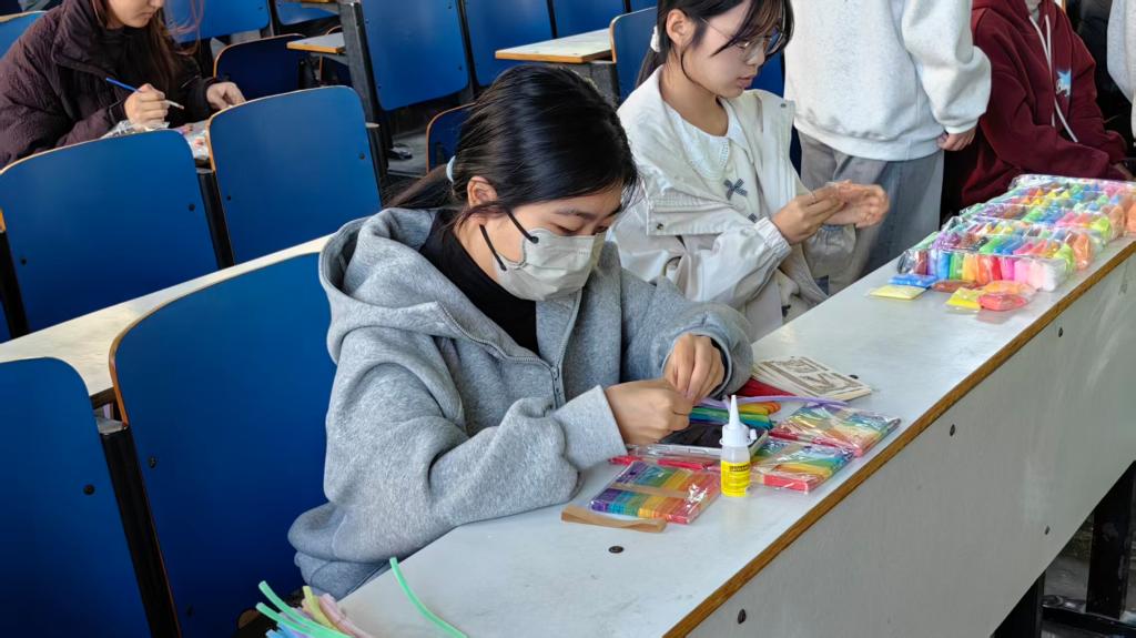 大赛设定了完整的商业闭环,各参赛团队获得等额模拟启动资金,用于采购扭扭棒、陶瓷坯等基础材料。团队需通过创意设计,将原材料转化为具有市场竞争力的手工艺品,并在模拟集市中完成销售,最终以盈利水平决出胜负。这一赛制全面考察了学生的资源整合、产品创新与市场营销能力。比赛现场化身为活力四射的创意工坊和模拟集市。同学们全情投入,精心设计并制作出风格各异的陶瓷饰品与扭扭棒工艺品。在销售环节,各团队灵活运用营销策略,通过特色包装、价值讲解等方式积极推广产品。现场交易氛围热烈,互动频繁,生动再现了真实的商业场景。